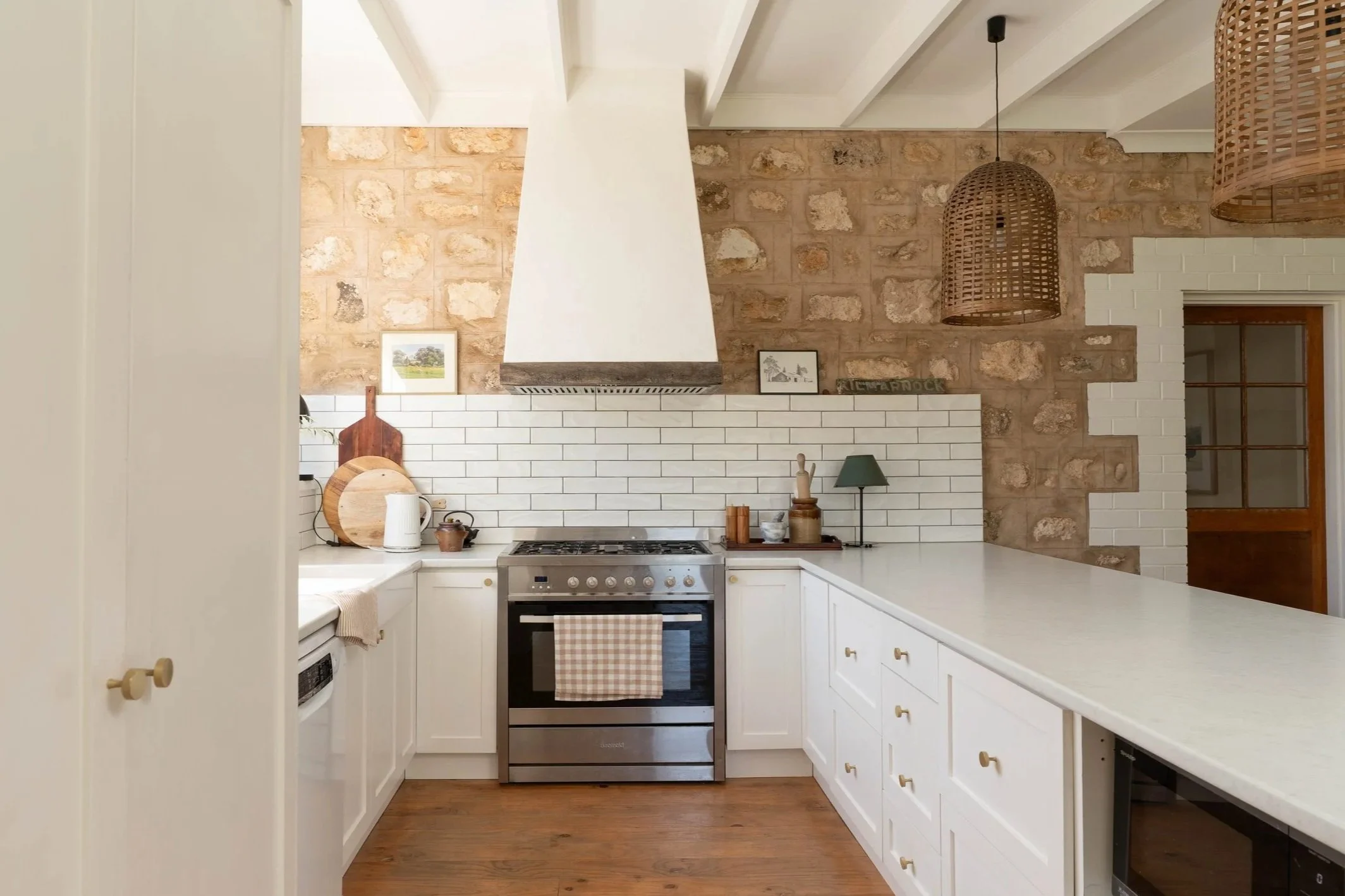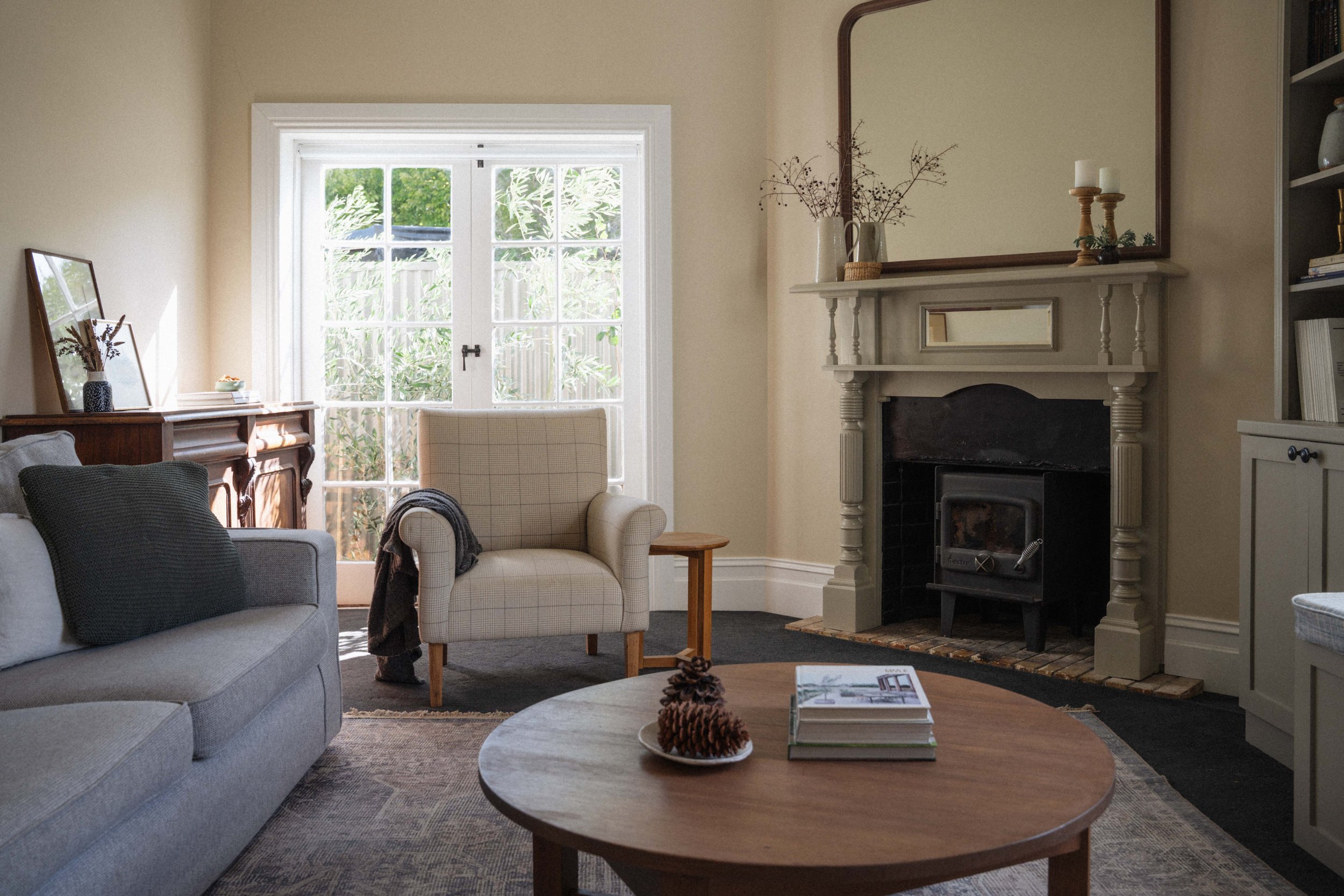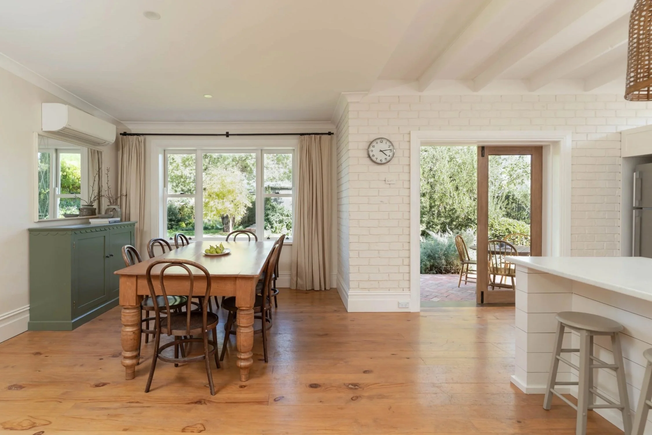 This heritage family home in Strathalbyn has been carefully renovated to incorporate a large open-plan living space and kitchen, along with a seperate lounge complete with built-in cabinetry and wood burning heater. The open plan room was carefully space planned to include a large dining table overlooking the garden, space for plenty of comfortable lounge seating for this large family and a new ‘character-filled’ kitchen with farmhouse sink and custom made range hood.