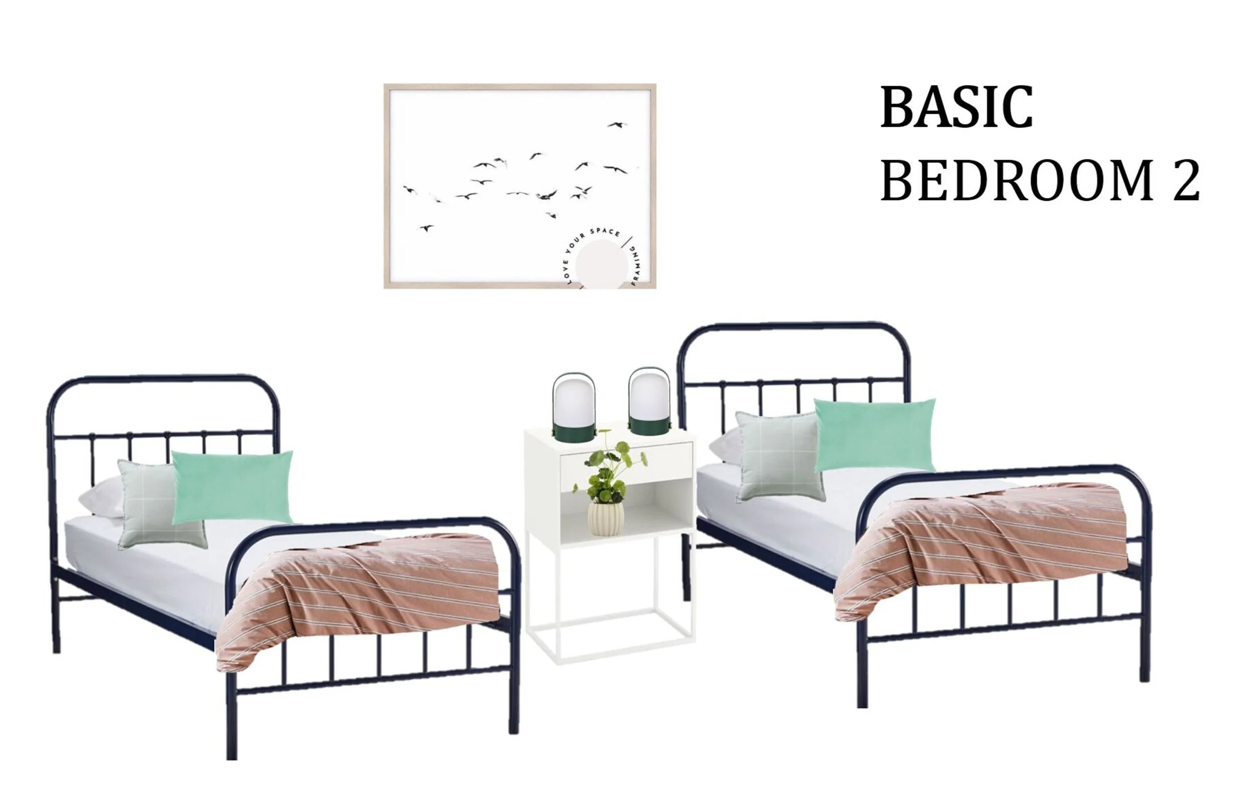 I had the scenario of designing a small guest bedroom on a tight budget for my sister in law’s beachside Airbnb. It needed to be a child friendly space, but equally inviting for adult guests. And don’t forget the vibe – Scandinavian and Coastal all the way!