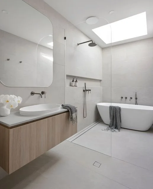 Freestanding baths are beautiful, but they require more room than most people realise — not just the space needed for the bath itself, but also clearance around it for cleaning and visual balance. There are also great back-to-wall bath options if you have your heart set on a bath, but need to save space for the bathroom to function well overall.